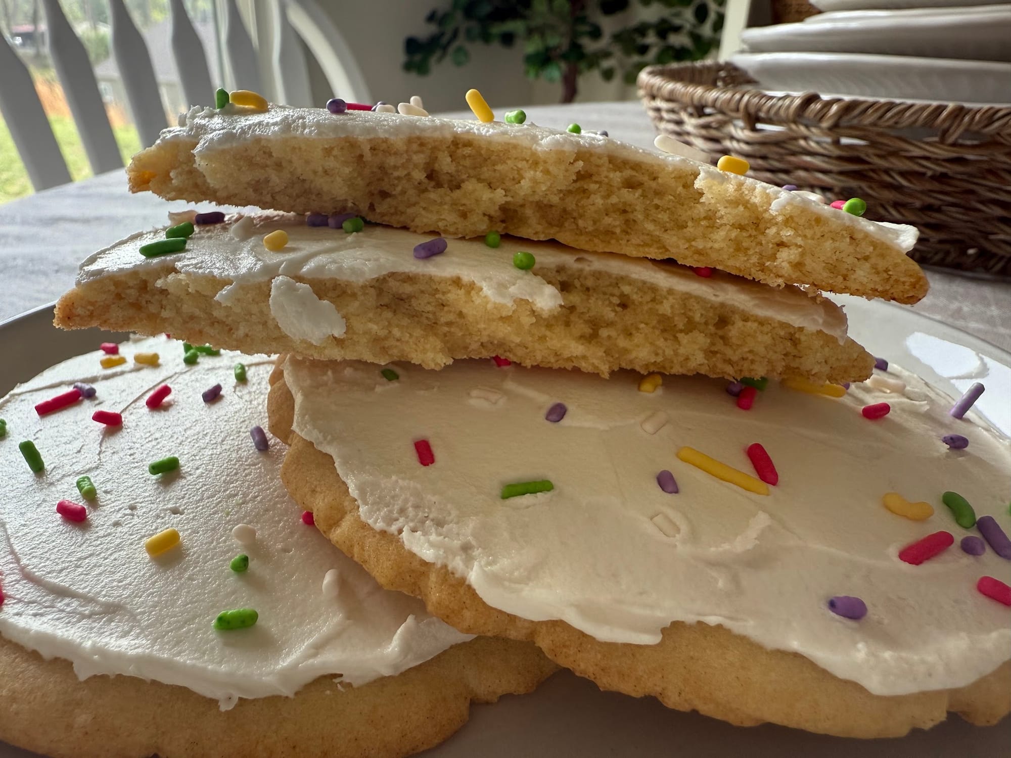 - Spread your desired amount of buttercream onto each of your cooled cookies. Add sprinkles or other decorations, if desired. Enjoy!